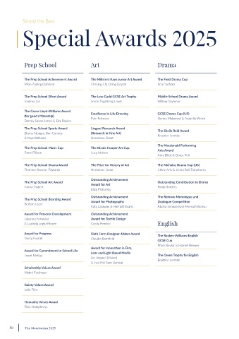 The Prep School Drama Award The Prize for History of Art The Nicholas Drama Cup (U6)
