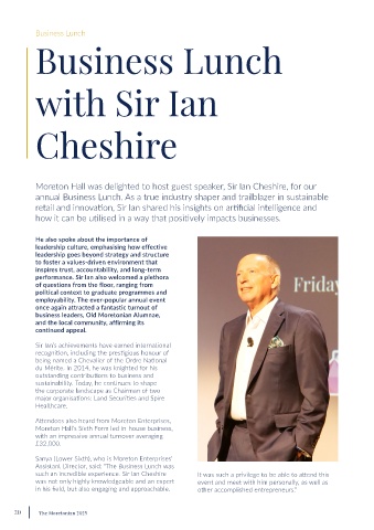 Moreton Hall was delighted to host guest speaker, Sir Ian Cheshire, for our