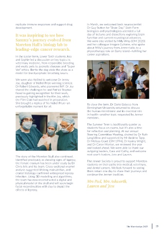 Moreton Hall’s biology lab to and her colleague Imogen Culnane, who spoke