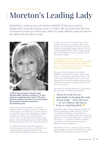 Sheila Reid, a proud alumna of Moreton Hall (OM 1954), has enjoyed a