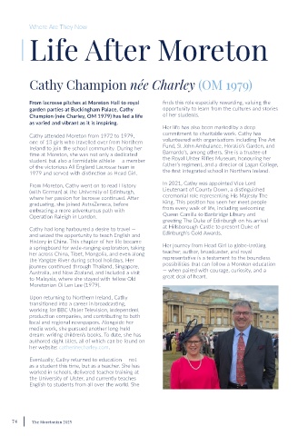 Cathy attended Moreton from 1972 to 1979, commitment to charitable work. Cathy has