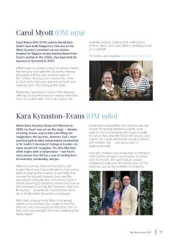 Carol Myott (OM 1979) and her friend Sally business remains a family affair, with Carol’s