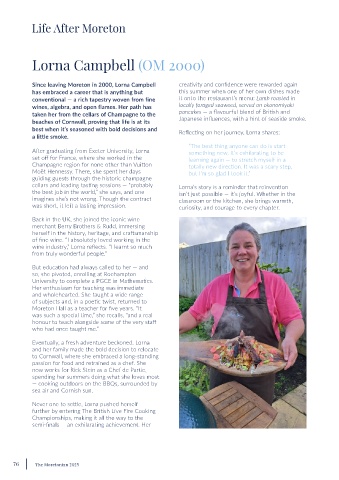 Since leaving Moreton in 2000, Lorna Campbell creativity and confidence were rewarded again